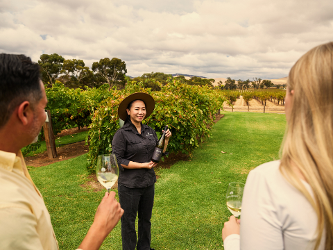 After your scenic ride, indulge in a specially Curated Premium Tasting in the Private Wine Lounge—crafted to showcase the pinnacle of Barossa winemaking. Begin with a glass of sparkling wine and a guided vineyard tour, then retreat to the elegant Private Wine Lounge for a premium tasting experience, perfectly paired with a seasonal cheese plate.